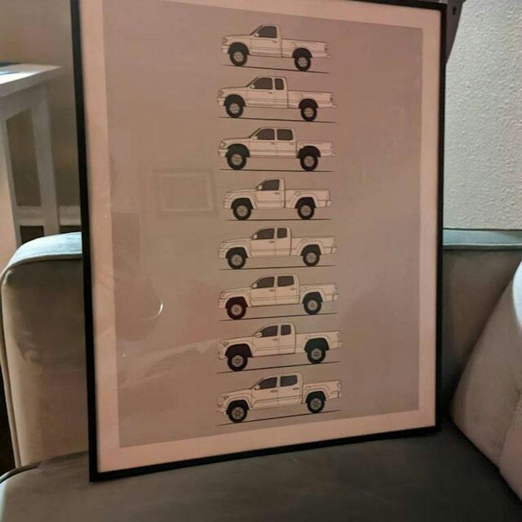 Decorate your walls with this poster print inspired by the complete history and evolution of the Toyota Tacoma Pickup, one of the most iconic and reliable Japanese trucks of all time.