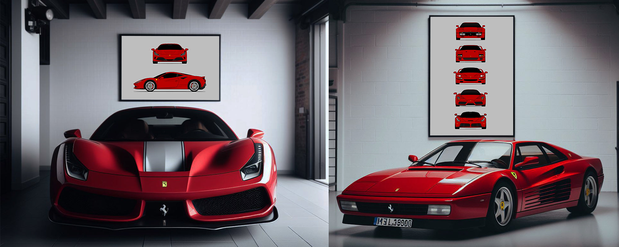 Our vintage-inspired artwork brings elegance and excitement to any room, home, garage, or office with timeless car décor. Ferrari defines Italian excellence in supercar design, racing heritage, and uncompromising performance.