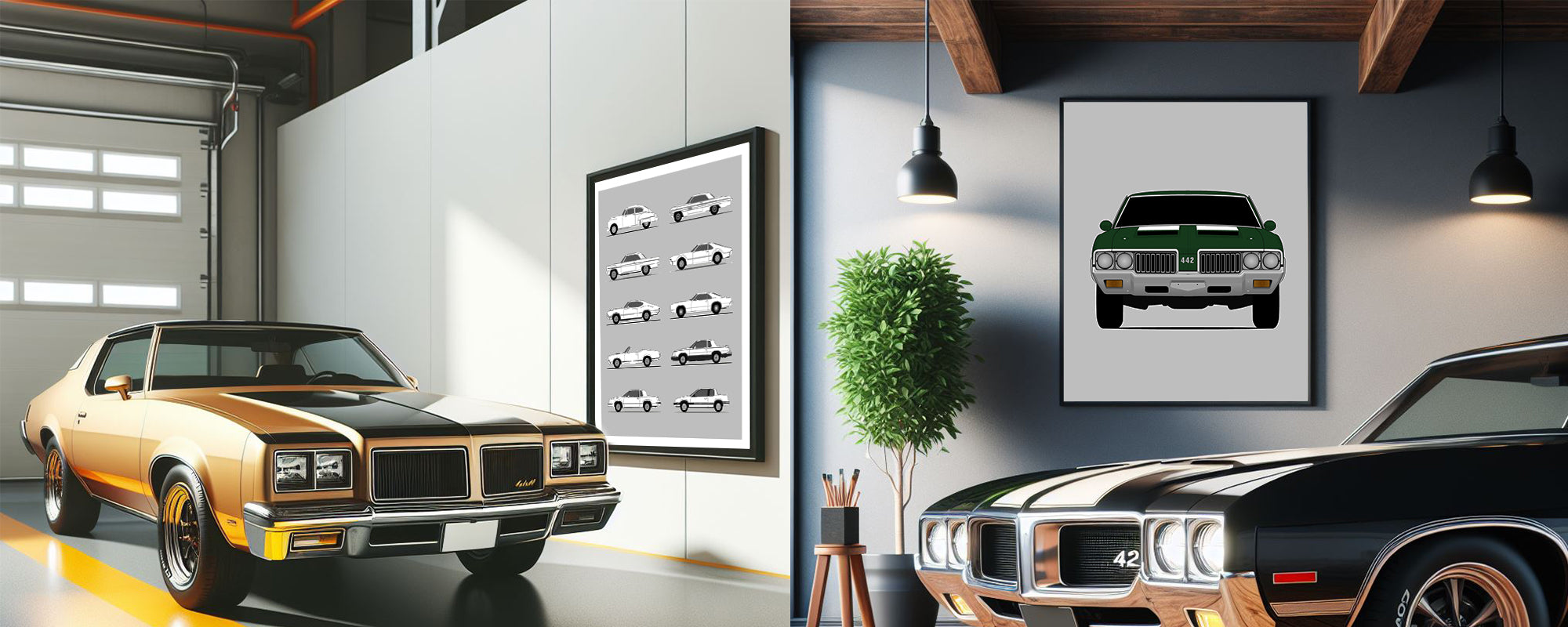 Featuring the Oldsmobile 442, Cutlass, and Toronado, our handcrafted car posters are designed and created by a small team of car enthusiasts who’ve built the world’s largest car poster business. We create original automotive art for car collectors and enthusiasts.