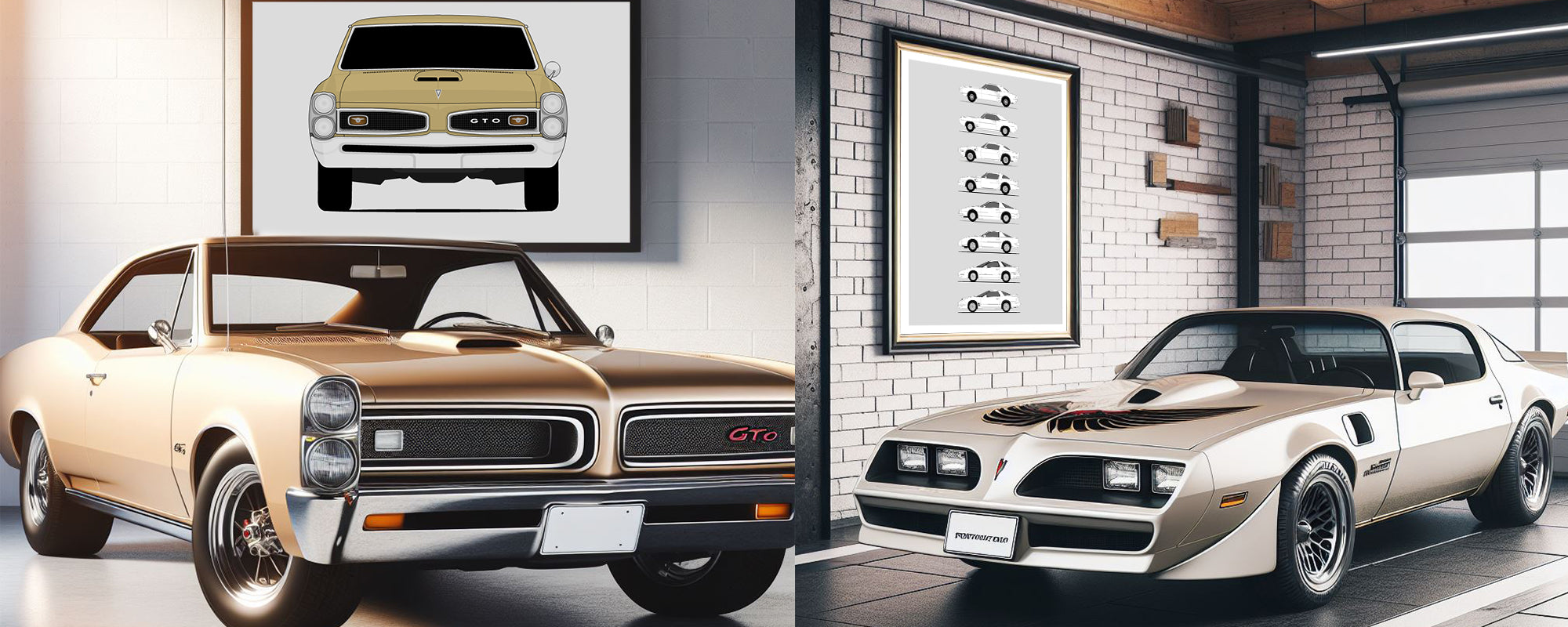 Our vintage-inspired artwork brings elegance and excitement to any room, home, garage, or office with timeless car décor. Pontiac is celebrated for its muscle car heritage, bold styling, and powerful performance legacy.